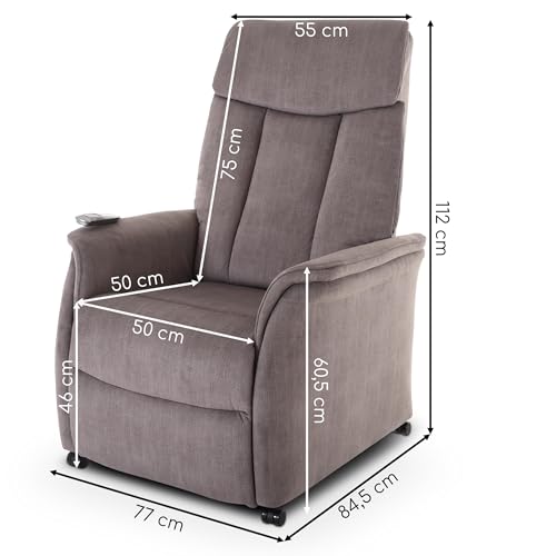 ✅ Erlebe müheloses Aufstehen mit unserer elektrischen Aufstehhilfe: Der TV-Sessel unterstützt dich beim sicheren und mühelosen Aufstehen. Die elektrische Aufstehhilfe hebt den Sessel langsam und leise an, sodass du ohne Anstrengung aufstehen kannst. Der Sessel hat eine Breite von 77 cm, eine Höhe von 112 cm (143 cm mit Aufstehhilfe oben) und eine Abgrund von 84,5 cm (153 cm in Liegeposition).