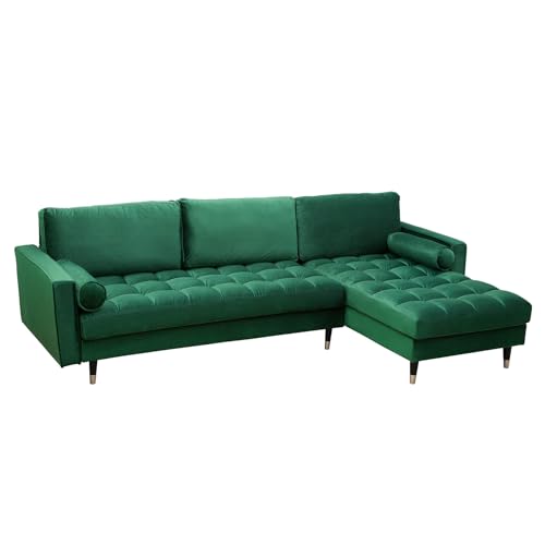 großes 3er Sofa Per extravagantem Samt-Bezug in dunkelgrün