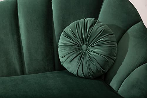 der Samtbezug in dunkelgrün verbreitet ein besonders exklusives Wohnflair