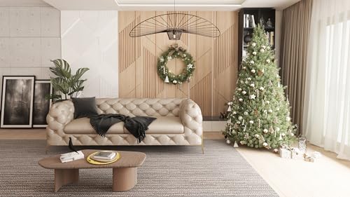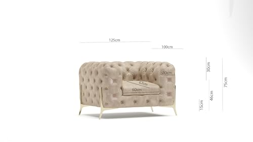 AUßERGEWÖHNLICHER KOMFORT MIT HOLZGESTELL, WELLENFEDERUNG UND METALLFÜßEN: Die 2- und 3-Sitzer Sofas und der Sessel sind jedweder FSC-zertifiziertem Holzwerkstoff gefertigt. Die großzügige Polsterung, die abgerundeten Armlehnen, die goldenen Metallfüße und die traditionelle Knopfheftung verleihen der Sofagarnitur den Charme vergangener Zeiten und edler Wohnräume. Eine komfortable Wellenunterfederung, ein stabiles Holzgestell und eine atmungsaktive Polsterung bieten ein angenehmes Sitzgefühl.