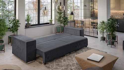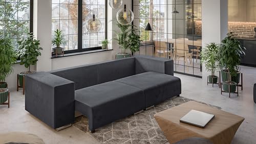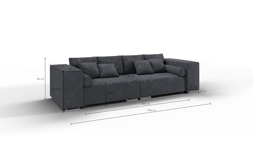 S-Style Möbel Freiham Sofa 5-Sitzer Mit Schlaffunktion für Wohnzimmer Couch Aus Mikrofasern Möbel Freistehende Polster Sofas & Couches Couchgarnitur Graphit 290 x 110 x 80 cm