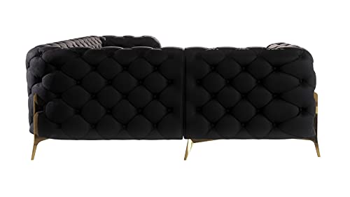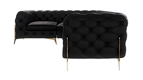 S-Style Möbel Milton Ecksofa 4-Sitzer Eckcouch Links Chesterfield-Ecksofa Sofa für Wohnzimmer Lounge Couch mit goldenen Metallfüßen Möbel Freistehende Polster Sofas & Couches Schwarz 262x200x73 cm