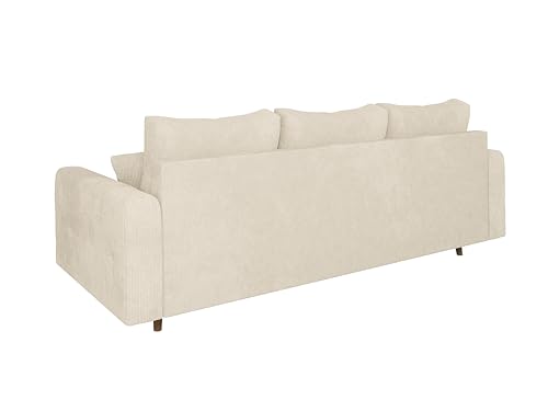 S-Style Möbel Sofa Couch 3 Sitzer Mit Kissen Holzfüße Braun Freistehend Chenille Stoff Bjorn Beige