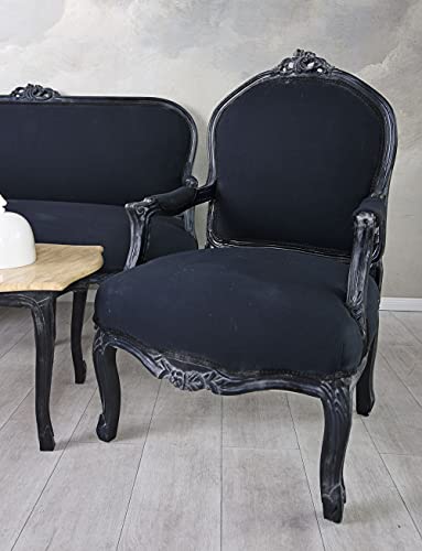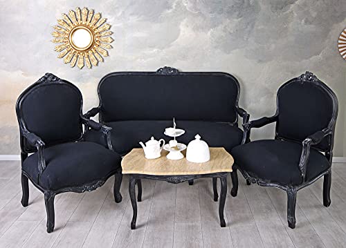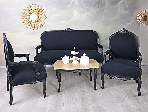 Salon Garnitur Südfrankreich Toile de Jouy Sofa Sessel Schwarz Holz Shabby Chic cat381i49 Palazzo Exklusiv
