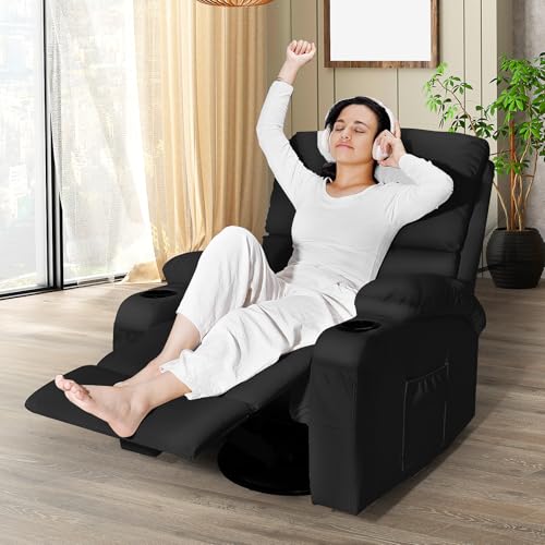 Superior Material: The Swivel Rocker Recliner is designed with comfort and quality in mind. Made from premium faux leather, which is durable, easy to clean, and water-resistant, the recliner chairs for adult cushions are thick padded with high-density sponges that offer excellent support while sitting. The high-resilience sponges ensure the reclining chair remains comfortable over time, conforming to your body and providing a cozy seating experience.