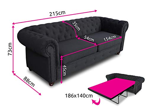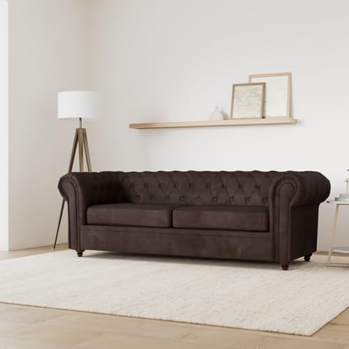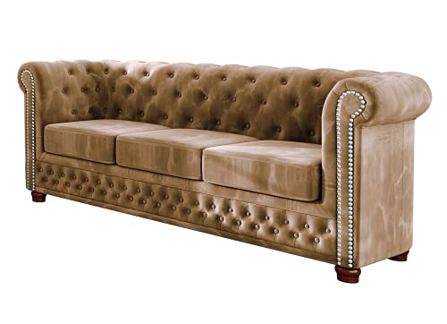 Schlafsofa Chesterfield Asti Bis 3-Sitzer, Sofa mit Schlaffunktion, Couch 3-er, Couchgarnitur, Sofagarnitur, Holzfüße, Polstersofa (Braun (Capri 45))