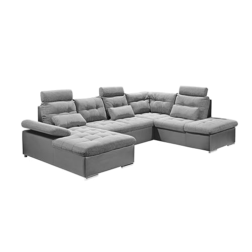 Schlafsofa Naki – Sofa mit Schlaffunktion und Bettkasten, Bettsofa, Couchgarnitur, Couch, Sofagarnitur, Bett (Grau + Schwarz (Alova 36 + Berlin 02))