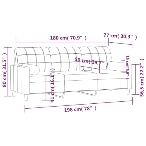 SECOLI Sofa 3 sitzer 3 sitzer Sofa 3er Couch mit Zierkissen Lounge Couch Sofa Couch für Wohnzimmer/Schlafzimmer/Büro/Wohnung-3-Sitzer:180cm-Dunkelgrau-Stoff