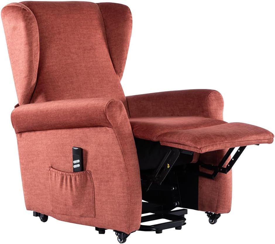 Sime NO-2 fernsehsessel elektrisch senioren 2 Motoren, unabhängig verstellbares Rückenlehnen-Fußteil 4-Rad-Kit seitliche Kopfstützen unverformbarer Sitz Gewebe relaxsessel aufstehhilfe Rot