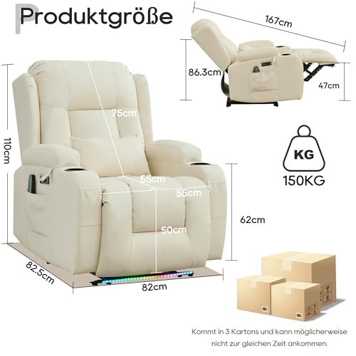 Einfache Montage: Dieses TV Sessel ist enorm einfach zu installieren und erfordert kein Werkzeug. Die Montage jedes elektrischen Liegesessels dauert etwa 15 Minuten