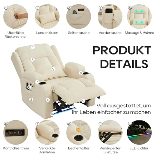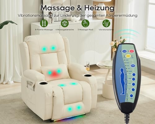 Fernsehsessel mit Massagefunktion und Wärme: Relaxsessel elektrisch hat 8 Vibrationspunkte, eine Heizzone im Rücken und 5 Modi mit 2 Intensitätsstufen. Es ermöglicht Ihnen, die perfekte Entspannungs-Kombination zu votieren