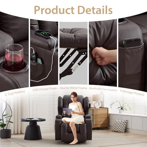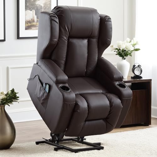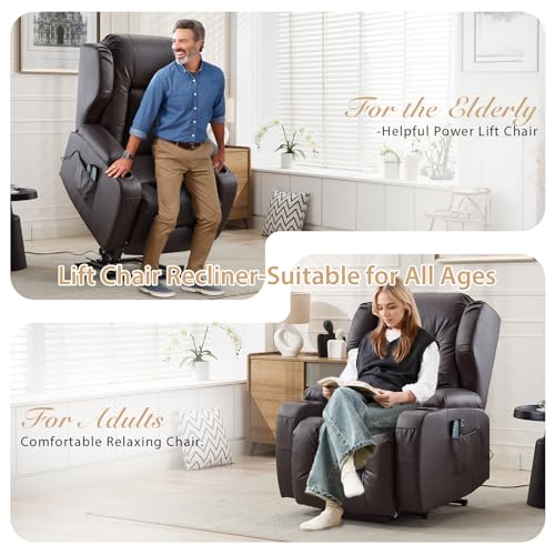 TCGBKAF Elektrischer Sessel mit Aufstehhilfe Senioren, Fernsehsessel Elektrisch Verstellbar Relaxsessel mit Liegefunktion, Massagesessel mit Wärmefunktion, TV Sessel Wohnzimmer Möbel (1, Braun)
