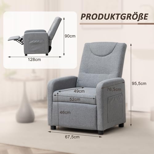 Thanaddo Relaxsessel Fernsehsessel Ruhesessel mit Liegefunktion, Einzelliege Sessel 140° Verstellbarer Rückenlehne, Ergonomisch Lounge Sessel bis 160 kg für Wohnzimmer Heimkino, Leinen Grau