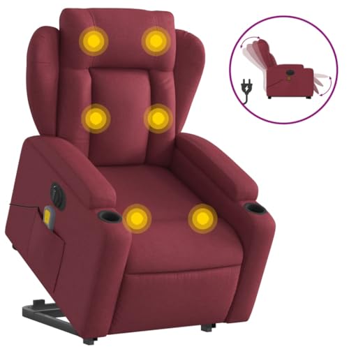 Tidyard Elektrischer Massagesessel, Sessel Verstellbar mit Liegefunktion, Sessel mit Aufstehhilfe, Aufstehsessel, TV Sessel, Weinrot Stoff