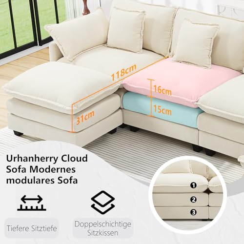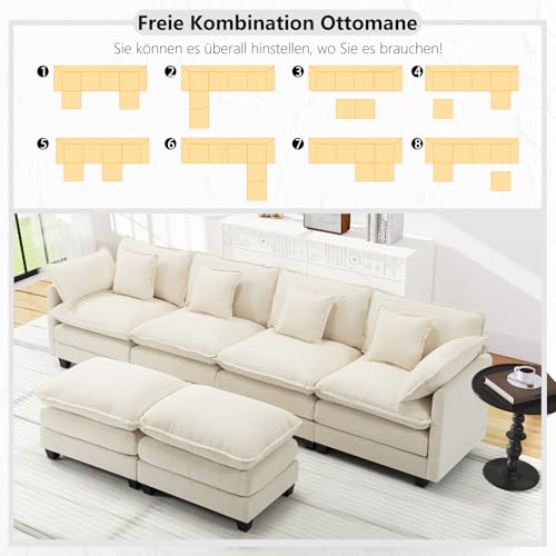 Ergonomisches Design: Das Sofa wird mit 4 Rückenkissen, 4 Dekokissen und 2 Armkissen für zusätzlichen Halt geliefert. Wenn Sie auf dem Sofa Haftstrafe verbüßen, schmiegt es sich an Ihren Rücken- und Lendenbereich an und bietet Ihnen so ein besonders bequemes Erlebnis