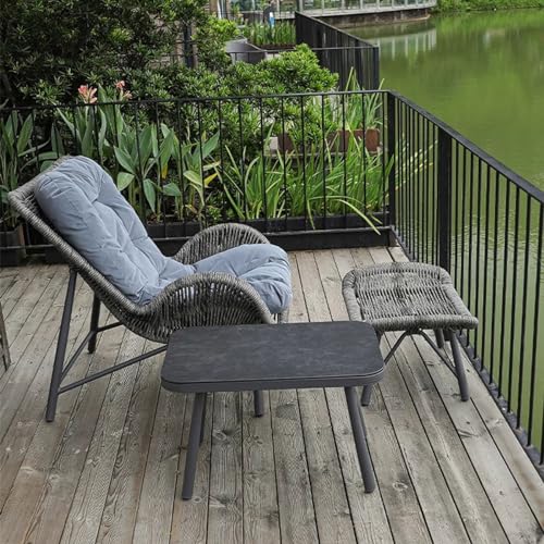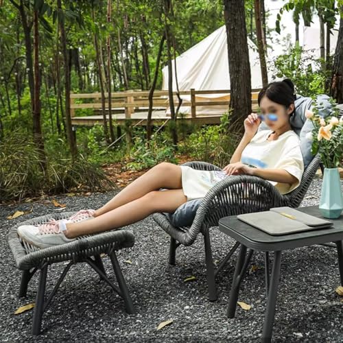 UZSPAC Sessel mit Hocker Lesesessel Bequem Rahmen Komplett aus Aluminiumlegierung Handgeflochtenes PE-Seil Relaxsessel Ohrensessel