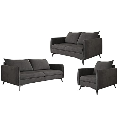 Sofa-Set mit festem Sessel, Mikrofaser, Polyester, Braun