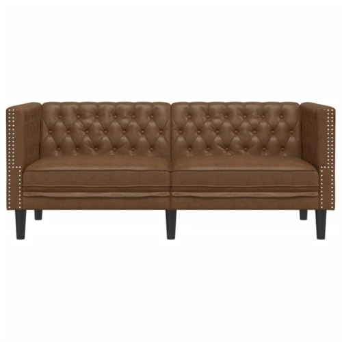 vidaXL Chesterfield Sofa 2-Sitzer, Couch mit Armlehnen Rückenlehne Stützbeine, Polstersofa für Wohnzimmer, Couchgarnitur, Braun Kunstleder