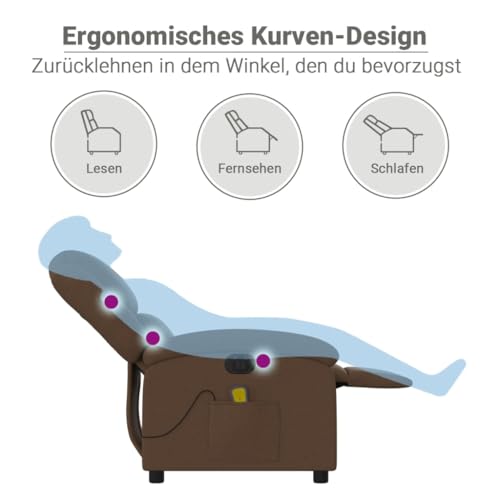 【Elektrische Liegefunktion:】 Dieser Relaxsessel ist mit einem Elektromotor ausgestattet, der Fußstütze und Rückenlehne durch einfaches Drücken des seitlichen Knopfes automatisch in jede gewünschte Position bringt. Diese Aufnahme ermöglicht eine maximale Anziehung von 135 Tönung. Darüber hinaus lässt sich die Rückenlehne auf Knopfdruck automatisch in die ursprünglichen Position zurückbringen.