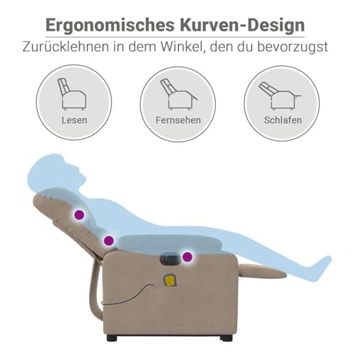 vidaXL Massagesessel, Sessel mit Aufstehhilfe Elektrisch, Relaxsessel mit Liegefunktion Vibrationsfunktion, Fernsehsessel Liegesessel Aufstehsessel, Taupe Mikrofasergewebe