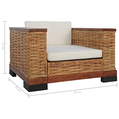 Farbe: Braun & Creme;Material: Natürliches Rattan + Gestell aufgebraucht massivem Mangoholz + Stoffbezug