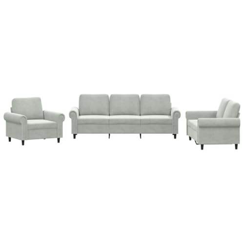 vidaXL Sofagarnitur 3-TLG., Sessel Couch mit Kissen, Sofa Wohnzimmersofa mit Armlehnen, Couchgarnitur Designsofa Sitzmöbel Polstermöbel, Hellgrau Samt