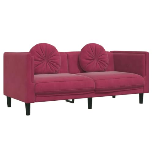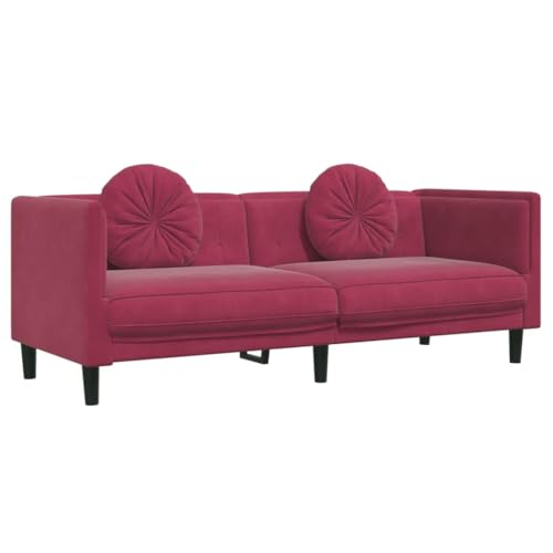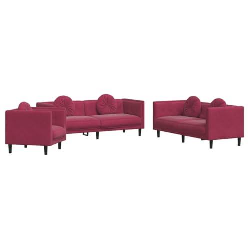 vidaXL Sofagarnitur 3-TLG., Sessel Couch Sofa für Wohnzimmer, Loungesofa Polstersofa mit Kissen, Couchgarnitur Sitzmöbel, Modern, Weinrot Samt