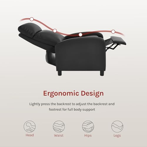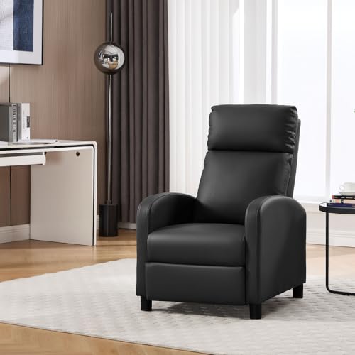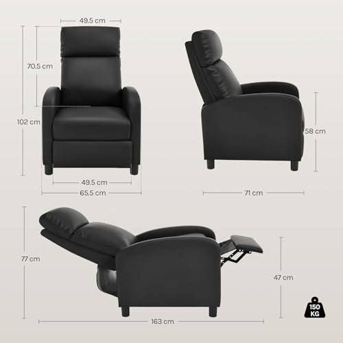 WOLTU Relaxsessel, mit Liegefunktion Schlaffunktion, mit hocker, verstellbar, Wohnzimmer Schlafzimmer, Polster, 89 x 102 x 65,5 cm, Kunstleder, Schwarz