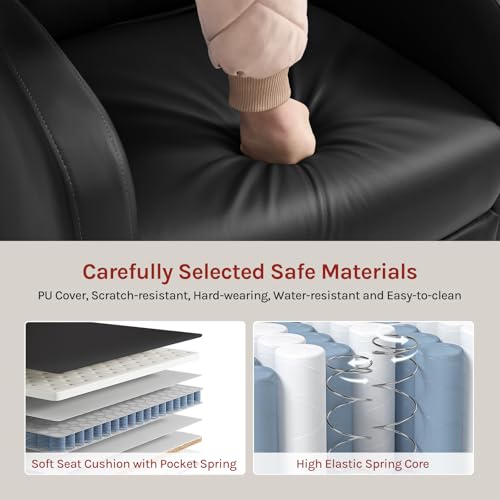 KOMFORTABELES ERLEBNIS: Die hohe Rückenlehne mit breiter, weicher Kopfstütze stützt den Kopf vollständig ab. Der Relaxsessel ist mit hochwertigem, hochdichtem Schaumstoff mit einem hochelastischen Federkern gepolstert, der weich und elastisch ist und auch bei längerem Sitzen nicht ermüdet. Ausgewählter hochwertiger Stoff: Kunstleder ist wasserfest und leicht zu reinigen