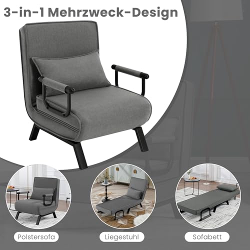 WOLTU Schlafsessel 3 in 1 mit bettfunktion, Gästebettfür, Schlafsofa mit Bettfunktion, Verstellbarer Rückenlehne, Wohnzimmer, Schlafzimmer, Balkon, Metallrahmen Leinen, 65 x 75 x 78cm, Dunkelgrau