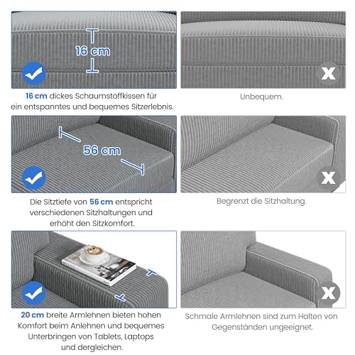 Weicher Stoff: Dieses Zweisitzer-Sofa ist von dem robusten und weichen Cordstoff alle Polyester bezogen. Das Gewebe ist angenehm im Griff, sorgt statt dessen ein gemütliches Sitzgefühl und bekannt als erleichtert die Wartung und Pflege
