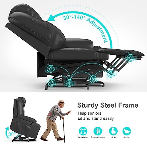 YONISEE Elektrisch Aufstehhilfe Fernsehsessel Verstellbar Relaxsessel, Heizung Vibration Massage Sessel f¨¹r Senioren Relaxliege Home Wohnzimmer Kinosessel, USB-Anschl¨¹sse, bis 150 kg, Schwarz