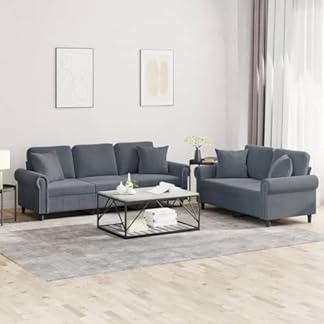 Enhance your living space with this voller Anmut dark gray velvet couch sine temporefeaturing both a 2-seater and 3-seater sofa. designed to provide exceptional comfort while adding jetzig sophistication to your home decor with its plush texture and contemporary style