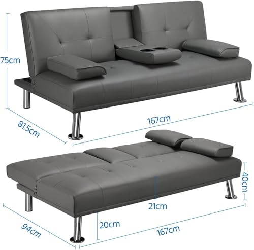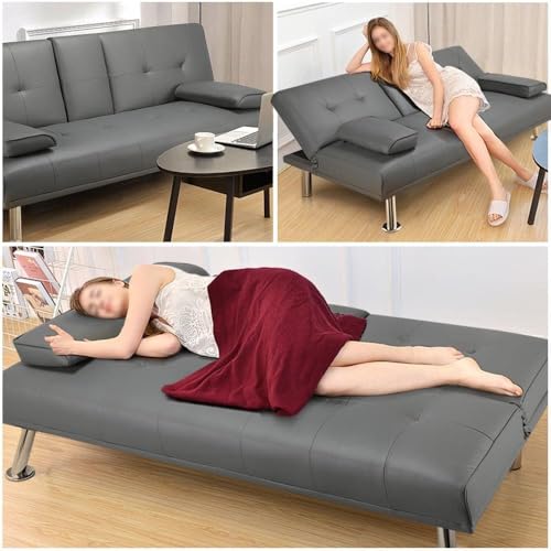 Zhyilut 3er-Sofa Schlafsofa Couch mit Tassenhalter Gästebett, Rückenlehne neigbar 105°/140°/180°, 167 x 81,5 x 75 cm, 350 KG belastbar (grau)