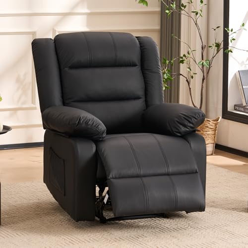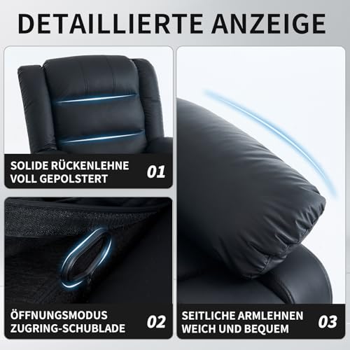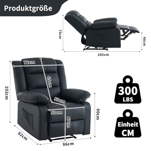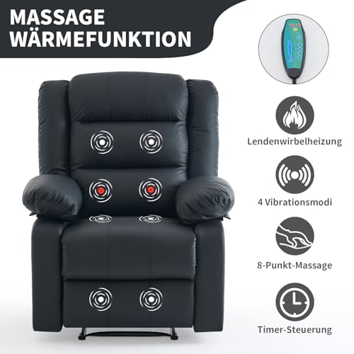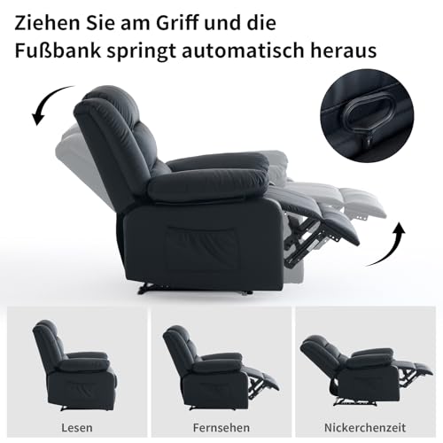 Zuacs Fernsehsessel mit liegefunktion, massagesessel mit wärmefunktion,relaxsessel mit liegefunktion, Sessel Wohnzimmer, lesesessel bequem, Manueller Freizeitstuhl (schwarz)